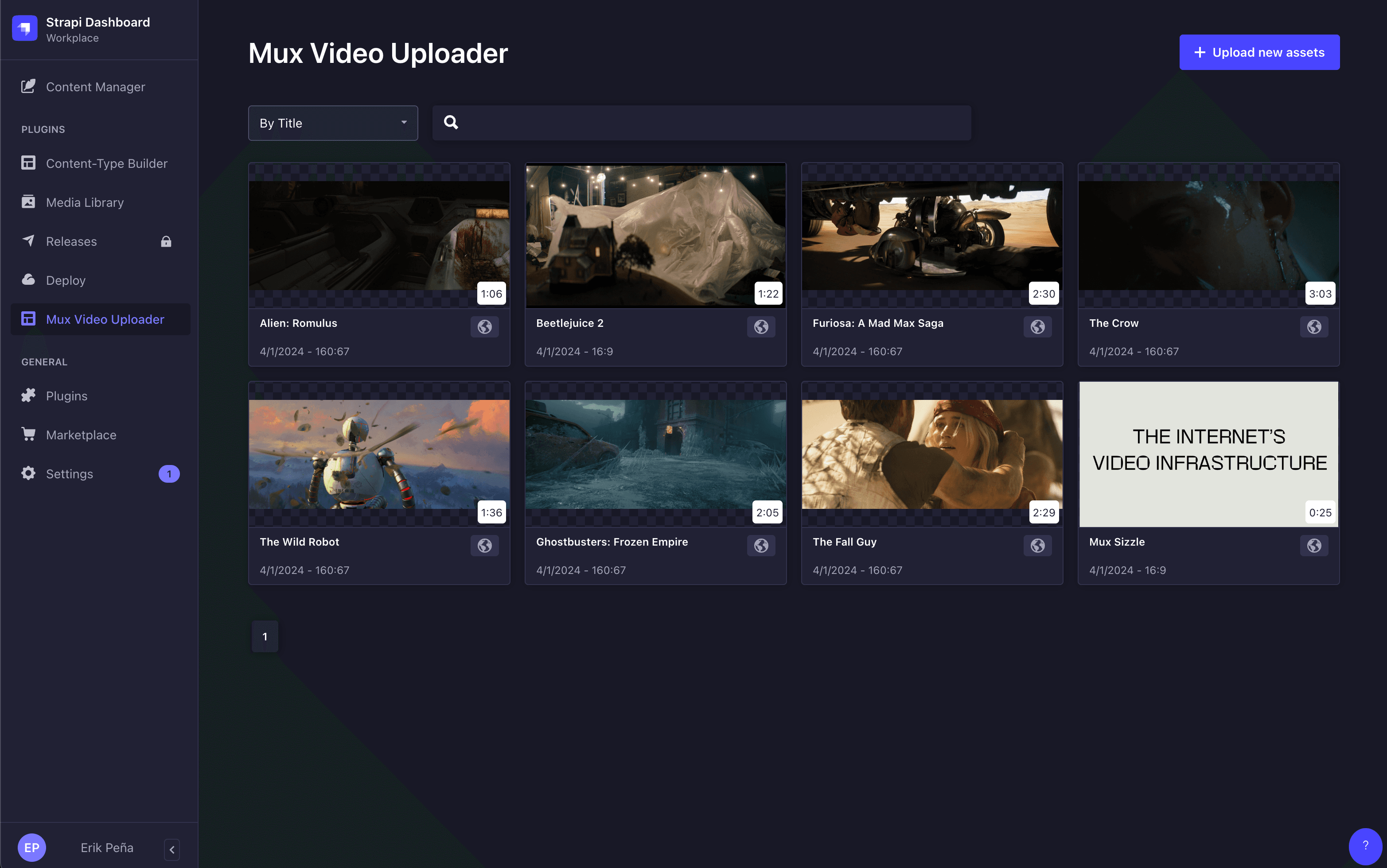 The Mux Video Uploader plugin allows editors to upload content directly to Mux from within the Strapi interface, then associate those videos with their custom collection types.